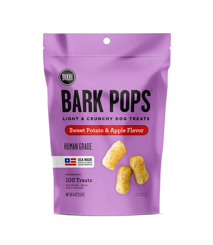 Bark Pops are a big treat with a few measly little calories. They’re made with a short list of human-grade ingredients and expertly baked to give them that satisfying crunch that dogs go crazy for. They’re made to satisfy even the pickiest of pup’s palates. And with approximately 100 treats in every bag, they’re an affordable, guilt-free way to treat your dog every day.