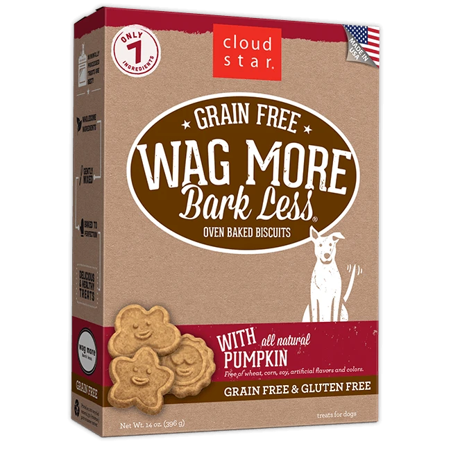Wag More Bark Less Grain Free Oven Baked treats are delicious, wholesome treats without the grain.