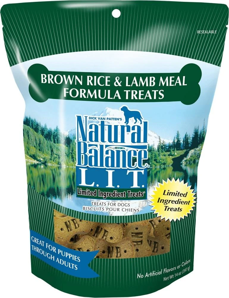 Natural Balance® L.I.T. Limited Ingredient Treats® Brown Rice & Lamb Meal Formula are a nutritious snack for your dog and come in two sizes, regular and small breed!